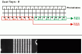 通常是在高解析或為了提高Line-scan Camera 傳輸速度的設(shè)計, 它的特性是整個線性CCD的每個光電二極管在感光后分成奇數(shù)及偶數(shù)將光轉(zhuǎn)成電荷訊號分成兩組將數(shù)據(jù)傳遞出去。