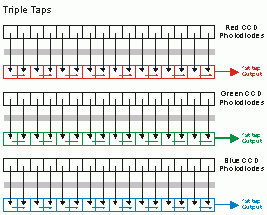 雖然3 CCD各別有獨立的 Data Clock, 但是因為必需要R, G, B 的數(shù)據(jù)組合在一起才會變成線性的彩色影像, 所以實際速度并沒有因為每個CCD 有獨立的 Data Clock而加快。