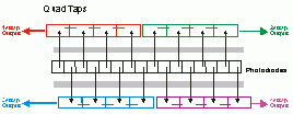 通常是在高解析或為了提高Line-scan Camera 傳輸速度的設(shè)計, 結(jié)合了雙輸出的奇偶輸出加上前后段輸出的特性分成四組, 讓取像速度加快變成四倍。