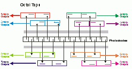 目前這類的設(shè)計是出現(xiàn)在超高分辨率(例如:12288pixel)的機種上, 除了分出前后段,而且各分出四組輸出, 因此取像速度可以提高成八倍而不會因為分辨率很高而讓線周期(Line Period) 拖太長。