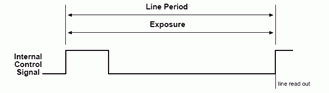 在內(nèi)部控制訊號產(chǎn)生一個方波, 當(dāng)方波下降時即開始作曝光取像, 此為縮短曝光時間的模式(一般可以透過Camera 設(shè)定工具達(dá)成), 但是線周期時間還是維持不變。