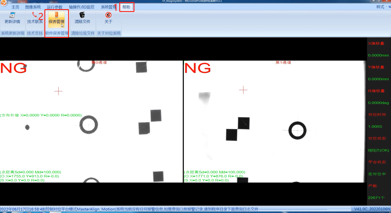 1. 在 MasterAlign RX64 軟件的系統(tǒng)界面中,找到并點(diǎn)擊“幫助”選項(xiàng)。