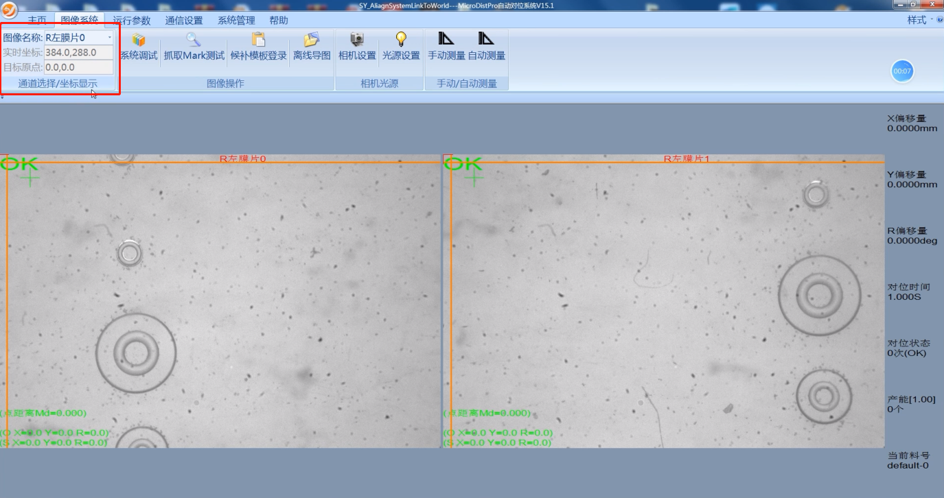 當(dāng)前圖像名稱對(duì)應(yīng)的圖像通道記錄目標(biāo)產(chǎn)品基準(zhǔn)像素 XY 位置,可以通過系統(tǒng)調(diào)試中的更新原始點(diǎn)或者更新目標(biāo)/對(duì)象產(chǎn)品的基準(zhǔn)位置修改。