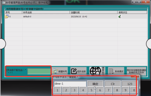料號(hào)名字輸入框,點(diǎn)擊會(huì)彈出桌面小鍵盤進(jìn)行輸入,也可用鍵盤直接輸入