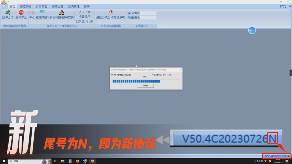 MasterAlign視覺(jué)對(duì)位軟件的版本號(hào)在軟件界面的右下角,如下圖所示: