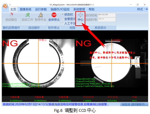 軟件上點擊中心,在圖像中可以看到橙色的十字線,這個為視野中心,在產品上料過程中,我們需要將產品放置到橙色十字交點即視野中心位置。