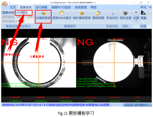 ? Step1:如圖11所示,通過“通道名稱”處選擇我們要進行模板學習的通道:“LCM靶標”,然后點擊“主模板登錄”進行圖像的模板學習。