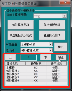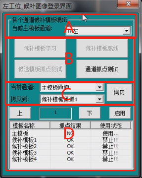 區(qū)域D - 候補(bǔ)模板狀態(tài):這個(gè)區(qū)域顯示了候補(bǔ)模板的抓點(diǎn)結(jié)果以及使用狀態(tài)。候補(bǔ)模板可以根據(jù)需要啟用或禁用。候補(bǔ)模板4則專門用于標(biāo)定或建立映射關(guān)系,具有特殊用途。