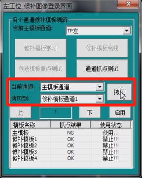 雙翌MasterAlign軟件的圖像系統(tǒng)中,候補(bǔ)模板登錄功能是一個(gè)重要的組成部分,它在保證穩(wěn)定性和準(zhǔn)確性方面發(fā)揮著關(guān)鍵作用。其包含啟用/禁止候補(bǔ)模板,候補(bǔ)模板登錄,抓點(diǎn)測(cè)試等。目前系統(tǒng)中單個(gè)圖像通道有主模板+四個(gè)候補(bǔ)模板的方式;其中三個(gè)候補(bǔ)模板用于當(dāng)主模板抓點(diǎn)失敗后,自動(dòng)根據(jù)啟用情況,調(diào)用候補(bǔ)模板1,2,3 進(jìn)行靶標(biāo)獲取,如果候補(bǔ)模板 1,2,3 同時(shí)啟用了,系統(tǒng)首先會(huì)調(diào)用候補(bǔ)模板1,如果1抓靶失敗的話,才會(huì)啟用2,依次類推。備注:候補(bǔ)模板4專門用來標(biāo)定或者建立映射關(guān)系。