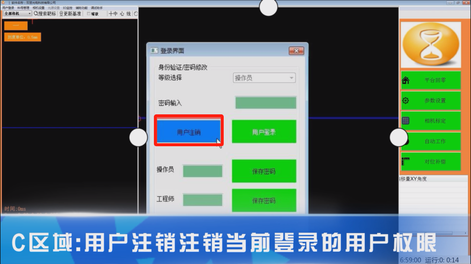 -點擊用戶注銷,注銷當前登錄的用戶權限,之后便可登錄其他操作權限。