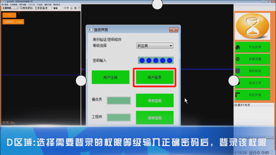 -選擇好需要登錄的權限等級后,輸入正確密碼后,點擊用戶登錄,登錄該權限
