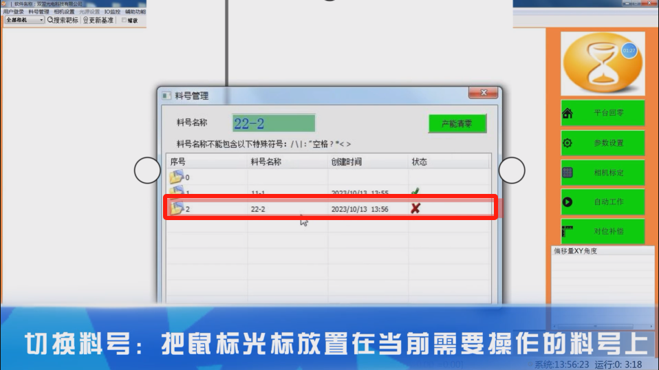 切換料號(hào):把鼠標(biāo)光標(biāo)放置在當(dāng)前需要操作的料號(hào)上