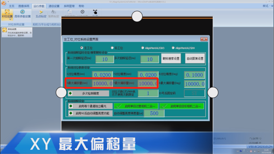 XY 最大偏移量:對位過程中對位平臺 X 方向/Y 方向最大可以移動的距離;
