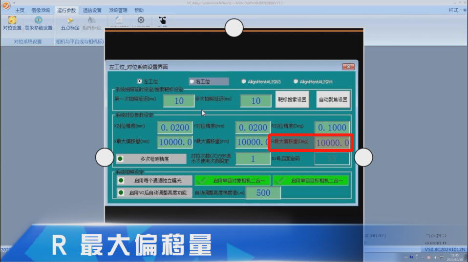 R 最大偏移量:對位過程中對位平臺旋轉(zhuǎn)方向最大可以移動的角度。
