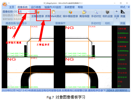 ? Step1:如圖7所示,通過(guò)“通道名稱”處選擇我們要進(jìn)行模板學(xué)習(xí)的通道:“OCA左”,然后點(diǎn)擊“主模板登錄”進(jìn)行圖像的模板學(xué)習(xí)。