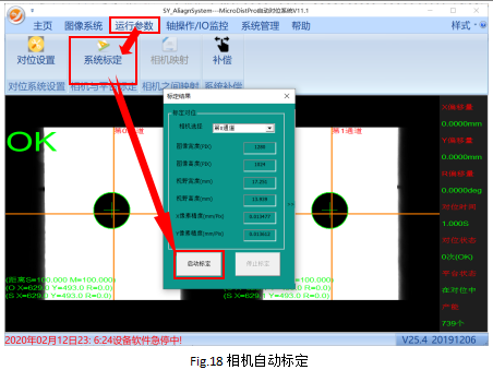 系統(tǒng)全體停止的狀態(tài)下點(diǎn)擊“運(yùn)行參數(shù)”->“系統(tǒng)標(biāo)定”,彈出標(biāo)定界面后,點(diǎn)擊“啟動(dòng)標(biāo)定”即可開(kāi)始標(biāo)定,系統(tǒng)提示標(biāo)定完成即完成標(biāo)定。