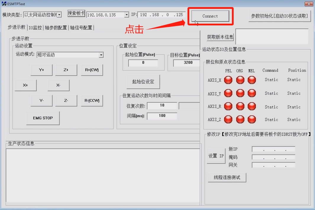 點(diǎn)擊Connest,等待幾秒后在生產(chǎn)狀態(tài)信息欄處顯示“模塊連接成功”