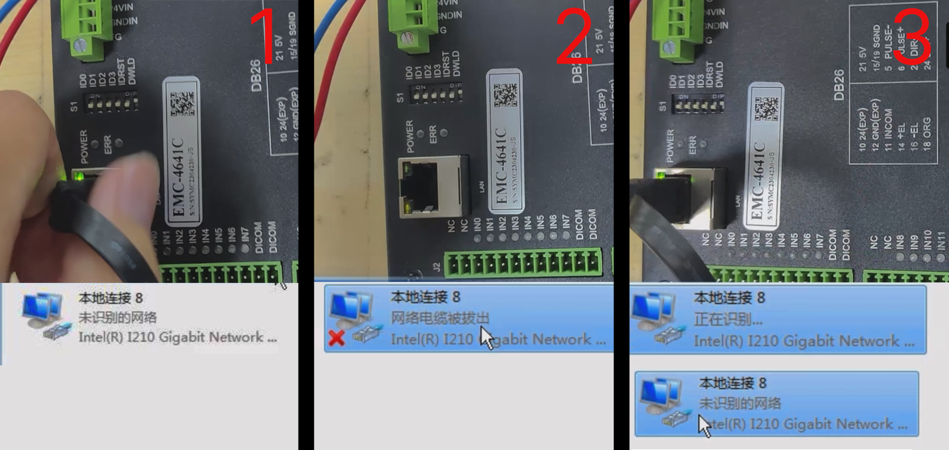 拔下網(wǎng)線,重新接入,可以看到正在重新識(shí)別,稍等幾秒連接完成
