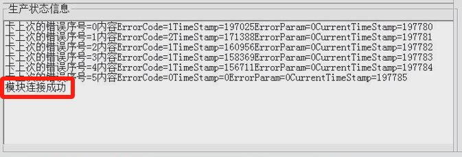 等待幾秒后在生產(chǎn)狀態(tài)信息欄處顯示“模塊連接成功”