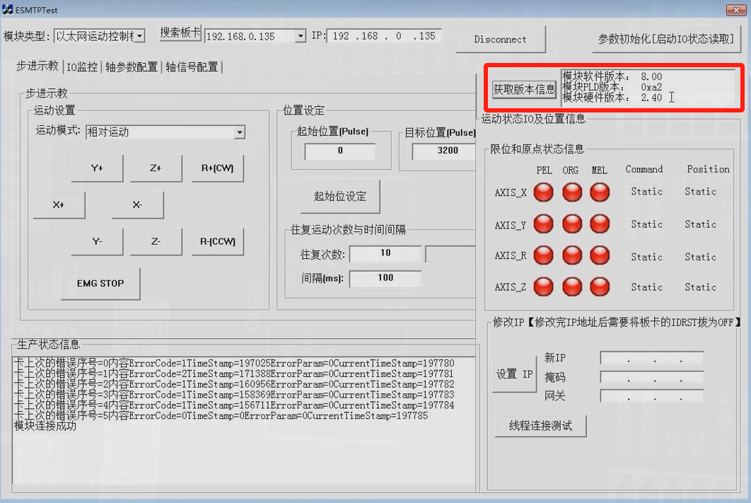 點(diǎn)擊獲取版本信息,就可以查看更新后的運(yùn)動(dòng)控制器的固件版本。