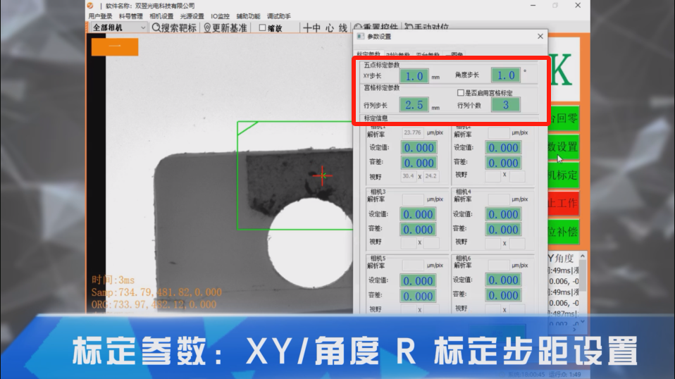 標定參數(shù):XY/角度 R 標定步距設置,即系統(tǒng)五點標定步距設置,大致原理分析如下圖所示: