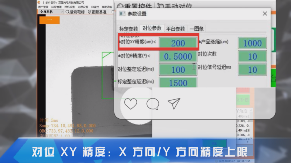 對位XY精度:X方向/Y方向精度上限,即視覺當(dāng)前對位X方向/Y方向偏移量判定值小于設(shè)定值才會輸出對位OK;(單位:um)
