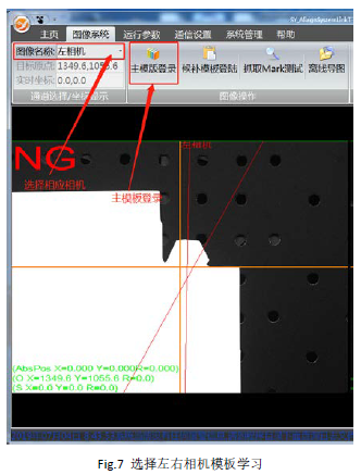 如圖7所示,通過“通道名稱”處選擇我們要進(jìn)行模板學(xué)習(xí)的“左相機(jī)”,然后進(jìn)行“主模板登錄”進(jìn)行左相機(jī)模板學(xué)習(xí)。