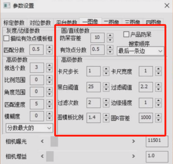 圓/直線工具參數(shù):相對應本系統(tǒng)圖像學習方法有:“圓形”、“直線交點”、“單直線”。