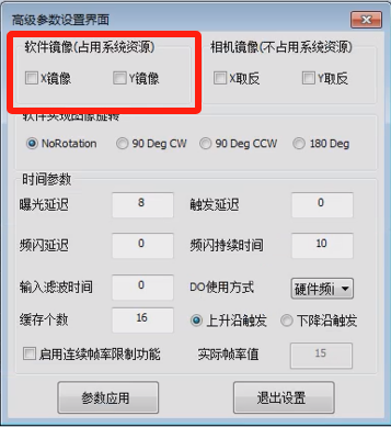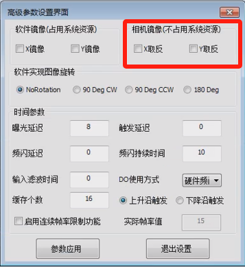 軟件鏡像:通過軟件算法對相機圖像鏡像,會占用系統(tǒng)資源,不建議選擇此方法