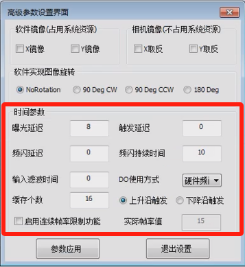 在雙翌WiseAlign軟件中,相機(jī)設(shè)置是軟件運(yùn)行的重要功能之一,今天為大家講解的是相機(jī)設(shè)置之中的時(shí)間參數(shù)有關(guān)它的各項(xiàng)參數(shù)是什么功能與作用: