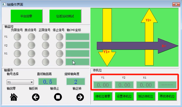 1. 待機位坐標(biāo):顯示當(dāng)前待機位的軸CMD保存的坐標(biāo),自動運行時每次將回到此坐標(biāo)值的待機位;