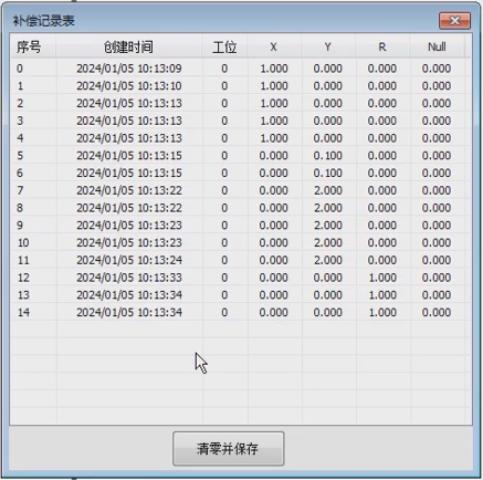 補償記錄表:點擊打開可以看到補償?shù)男蛱?、?chuàng)建時間、工位、XYR的補償數(shù)值。