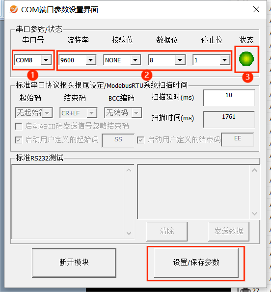 更改端口、參數(shù)后需要點(diǎn)擊右下角“設(shè)置/保存參數(shù)”后再進(jìn)行操作