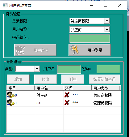 選擇“登錄權(quán)限”“用戶名稱”輸入密碼(供應(yīng)商密碼:310525),后點(diǎn)擊用戶登錄。