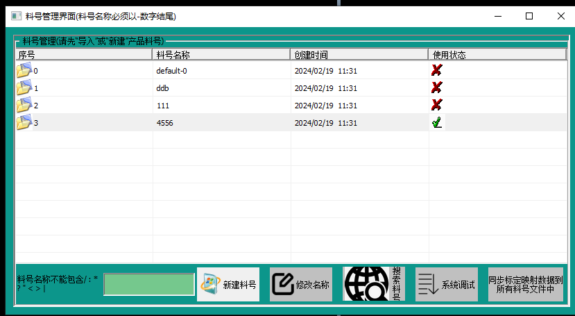 2:雙擊右鍵:將當(dāng)前選擇的料號(hào)進(jìn)行刪除。(不可恢復(fù))