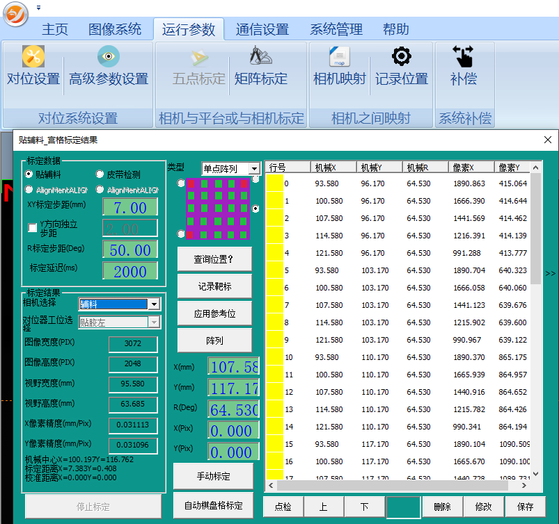 標(biāo)定檢查:X像素精度與Y像素精度數(shù)值越接近越好!