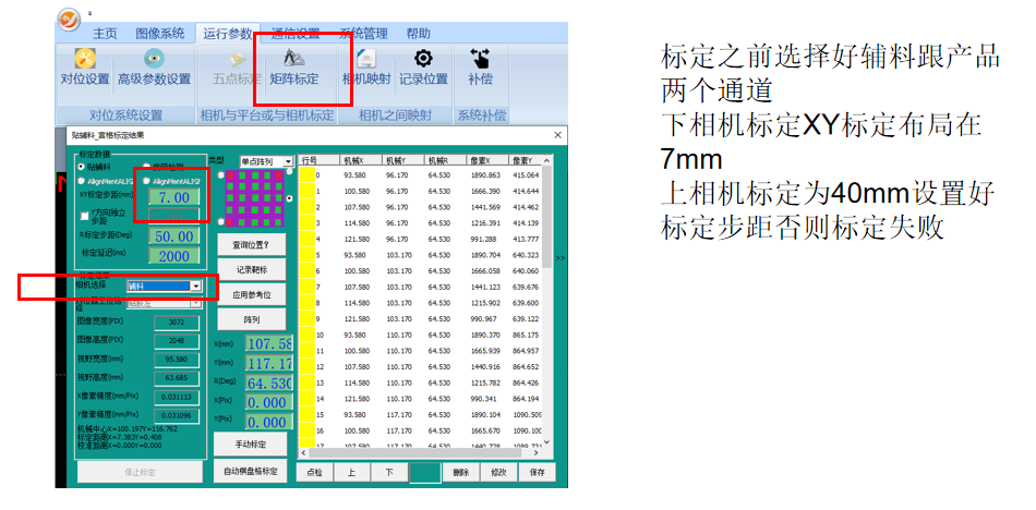 上相機(jī)標(biāo)定為40mm設(shè)置好標(biāo)定步距否則標(biāo)定失敗