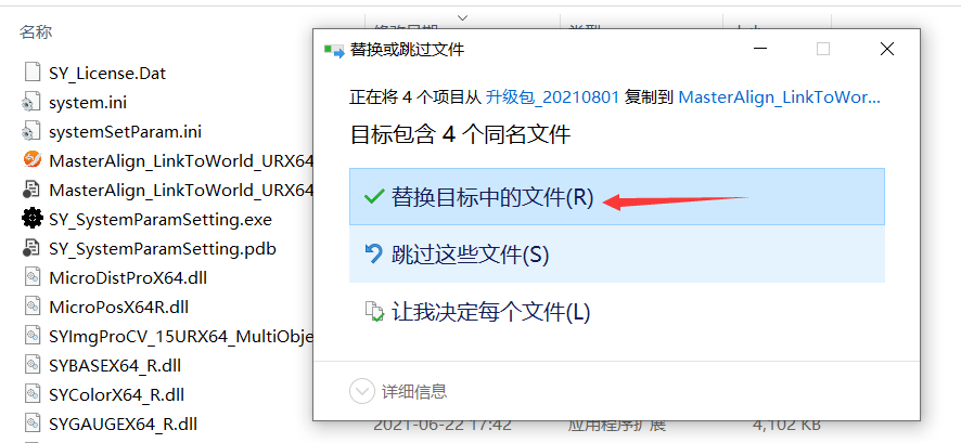 解壓收到的更新包文件“***.zip”打開(kāi)復(fù)制里面所有的文件,粘貼到到舊程序的文件夾里全部替換。操作步驟如下圖: