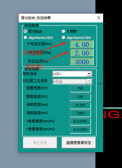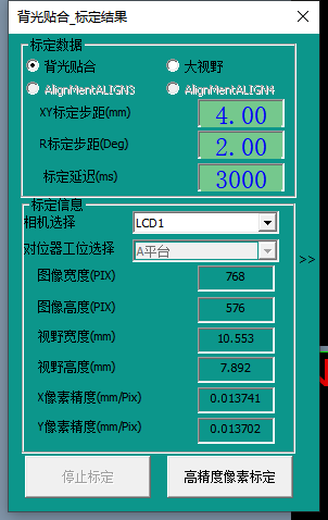注釋:標定計算出來的視野寬,高要和實際視野接近,否則標定結果就是錯誤的,另外X像素精度和Y像素精度要接近,否則標定結果就是錯的。