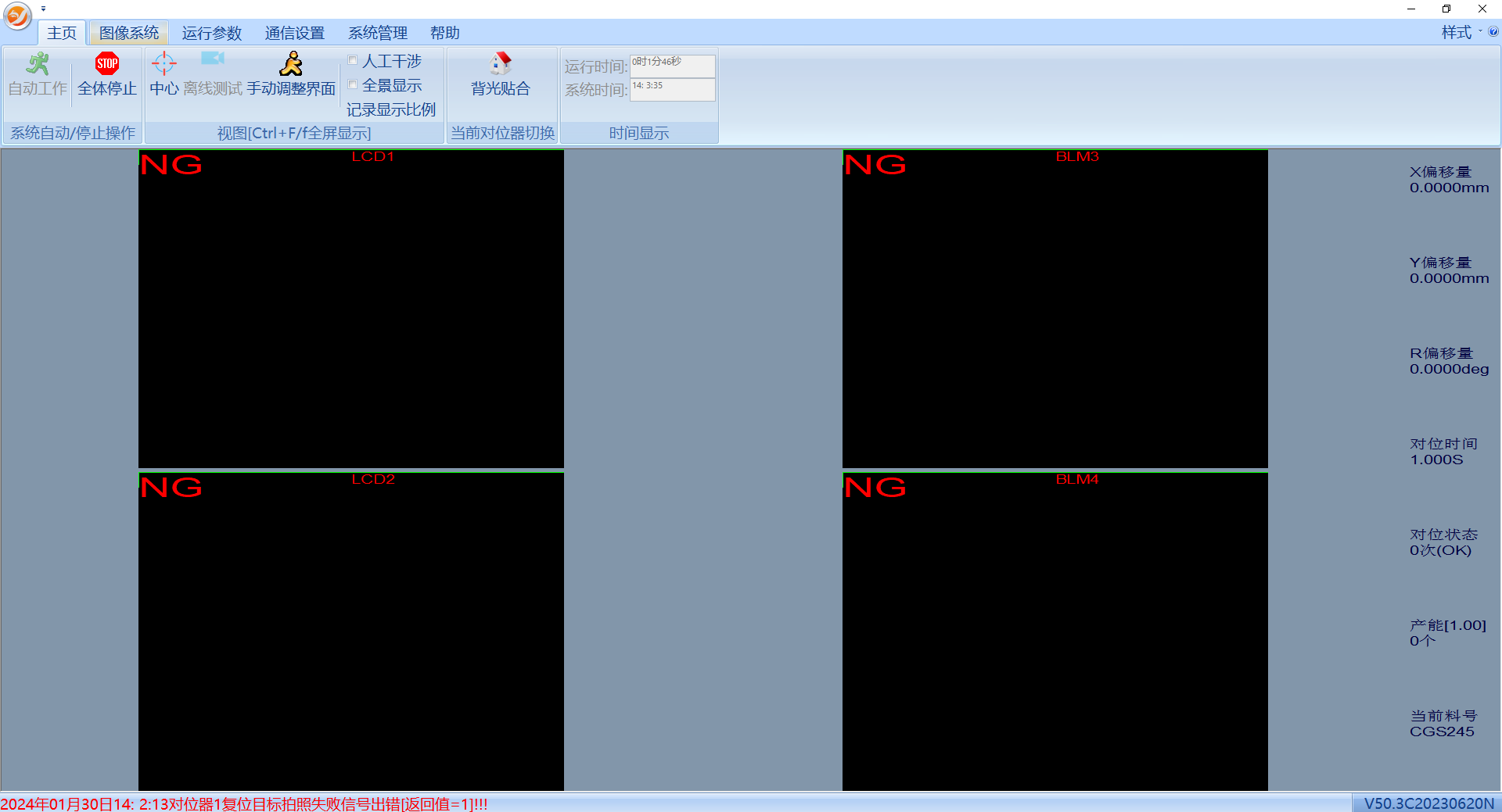 圖像系統(tǒng)包括主模板登錄、抓取mark測試、候補模板登錄、離線導圖、手動對位、相機設置。