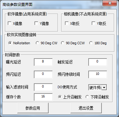 頻閃延遲:光源為頻閃模式時,接收到頻閃信號后延遲一段時間(us)后再進行觸發(fā)。