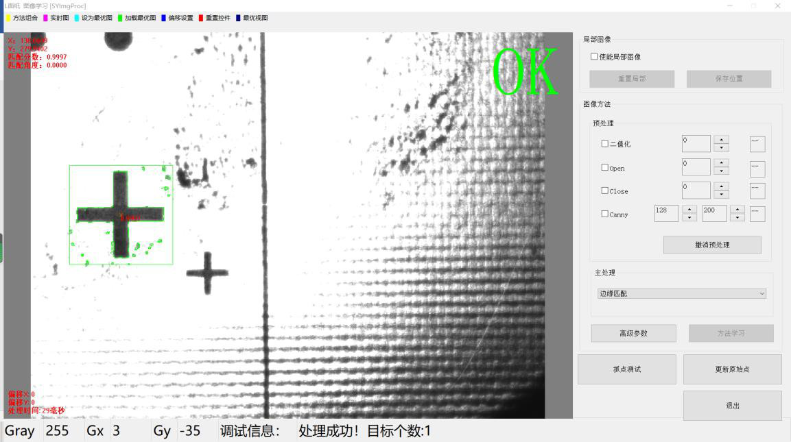 點擊【方法學習】,橙色區(qū)域的局部圖像作為模板被學習并保存,并自動執(zhí)行圖像處理并顯示結(jié)果。