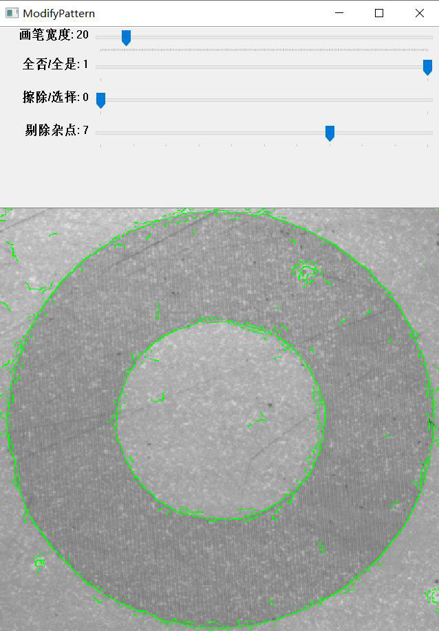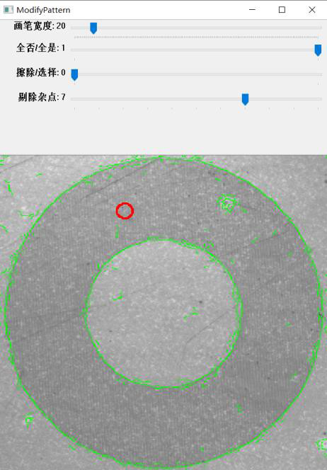 當圖像的質(zhì)量較差時,邊緣模糊產(chǎn)生大量的雜點;從而增加了搜索的時間,同時影響了搜索的準確性。通過調(diào)整【剔除雜點】去除大部分的干擾點,優(yōu)化了模板的輪廓信息。