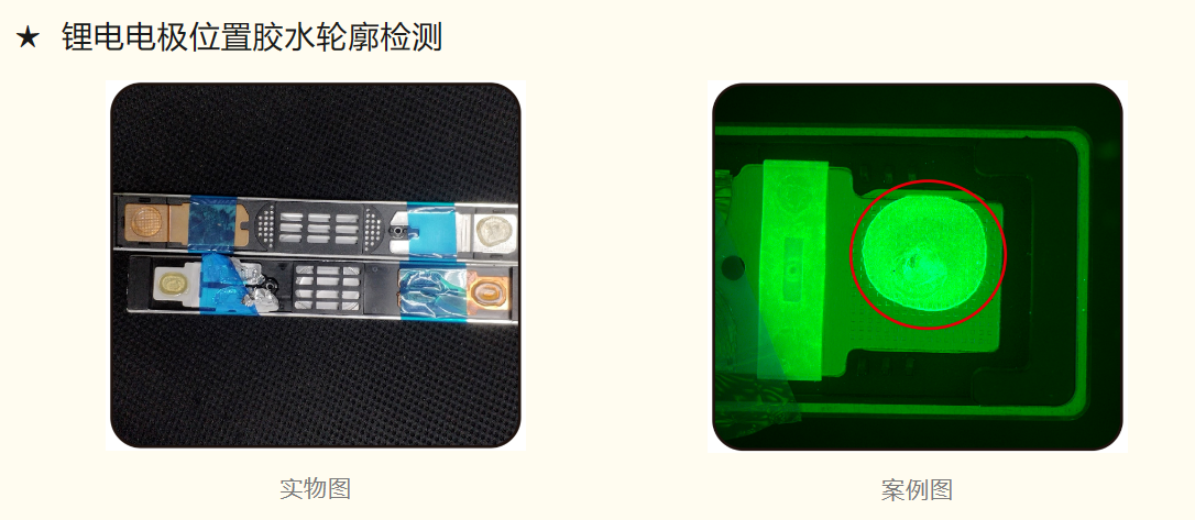 由于在鋰電的封裝中使用了膠水,所以膠水輪廓的檢測,也是鋰電生產(chǎn)中必不可少的一環(huán)。