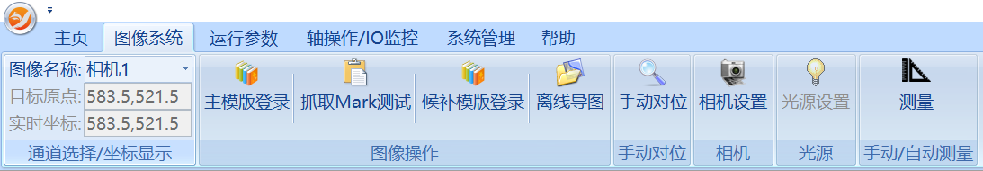 圖像系統(tǒng)包括主模板登錄、抓取mark測試、候補模板登錄、離線導(dǎo)圖、手動對位、相機設(shè)置。