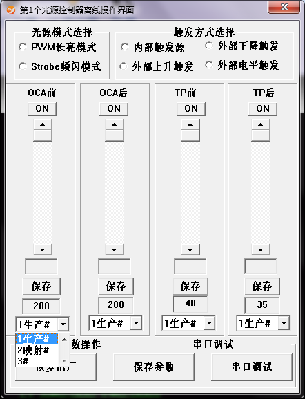 切換生產(chǎn)亮度:點擊該按鈕后4個通道光源亮度會變?yōu)樯a(chǎn)亮度;