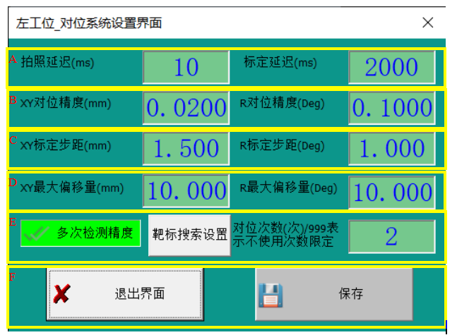 B、XY對位精度:X方向/Y方向精度上限,即視覺當前對位X方向/Y方向偏移量判定值小于設(shè)定值才會輸出對位OK;