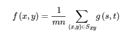 的濾波器窗口。算術(shù)均值濾波器就是簡單的計算窗口區(qū)域的像素均值,然后將均值賦值給窗口中心點(diǎn)處的像素: