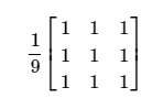 基于上述公式,可以很容易的得到的算術(shù)均值濾波器的窗口模板,下面以3×3為例