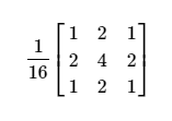 不同于上面的所有像素的系數(shù)都是相同的,加權(quán)的均值濾波器使用的模板系數(shù),會根據(jù)像素和窗口中心像素的距離而取不同的系數(shù)。賦予中心點(diǎn)最高的權(quán)重,然后隨著離中心點(diǎn)的距離增加而減小系數(shù),這樣做的目的是在平滑圖像的同時盡量降低對圖像的模糊。最常用的加權(quán)模板如下(3×3)為例: